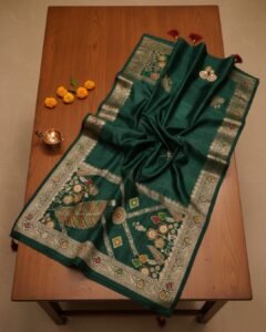Emerald Green Banarasi Silk Saree with Antique Zari Floral Border