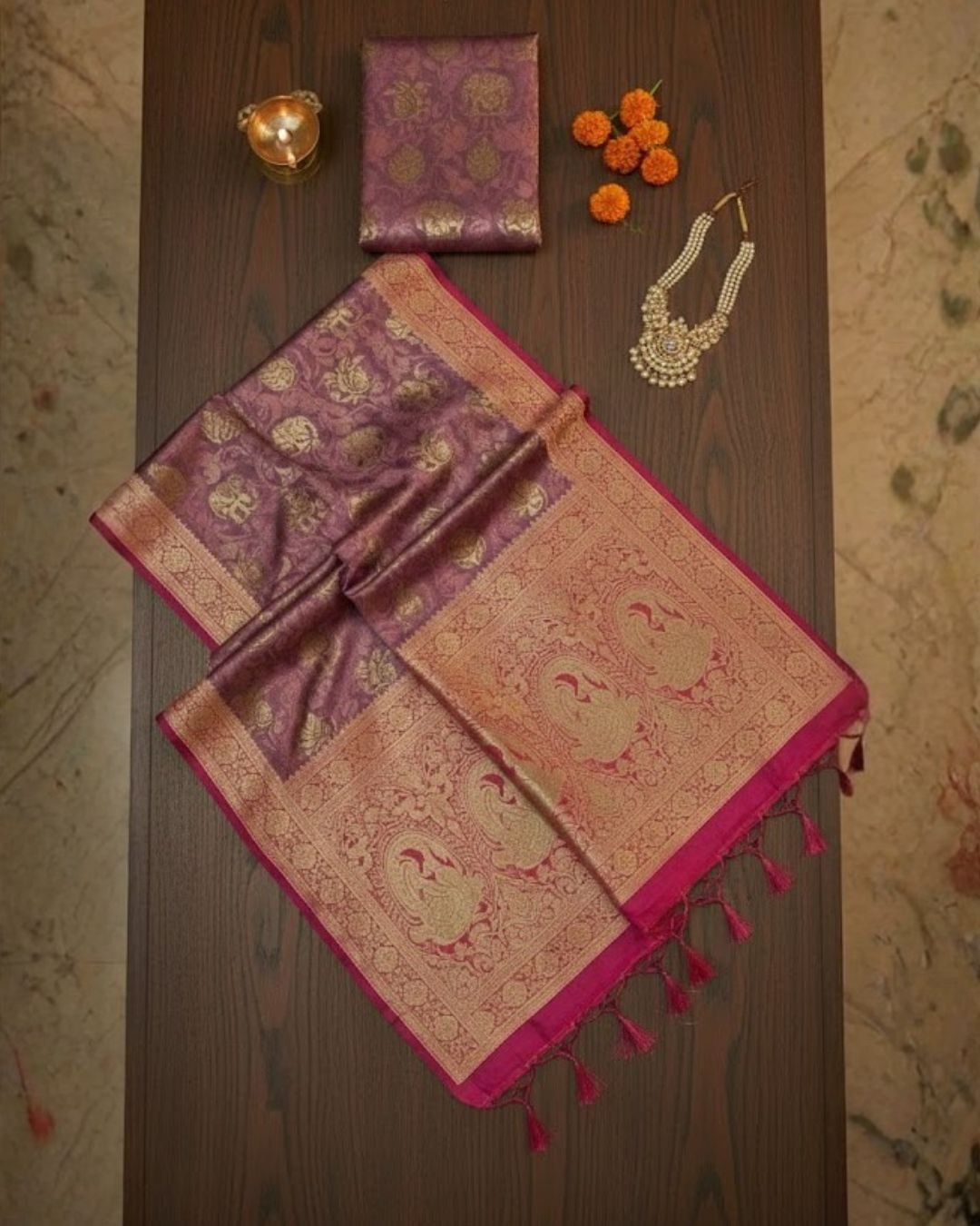 Royal Banarasi Silk Saree in Mauve Purple with Antique Gold Zari